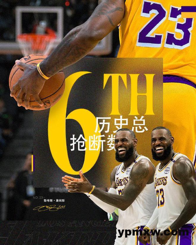 其一,詹姆斯生涯总抢断数2311次,超越奇克斯升至历史第6位。
