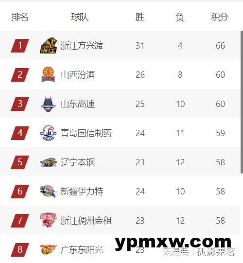 经过35轮比赛的争夺,目前浙江广厦队的战绩31胜4负高居第1,山西队26胜8负排名第2,山东高速男篮25胜10负排名第3,青岛队则是以24胜11负的战绩排名第4。本赛季开始之前很多球迷和相关的体育媒体预测北京首钢男篮和北控男篮可以进入常规赛前4,但是从目前来看两支球队战绩分别位列第9和第10,让不少的球迷感到失望;同时山东高速男篮在邱彪指导的带领下可以进入前3,青岛队在刘维维指导和杨瀚森等球员的带领下可以进入前4,这也是大部分球迷没有想到的,算是不小的惊喜。