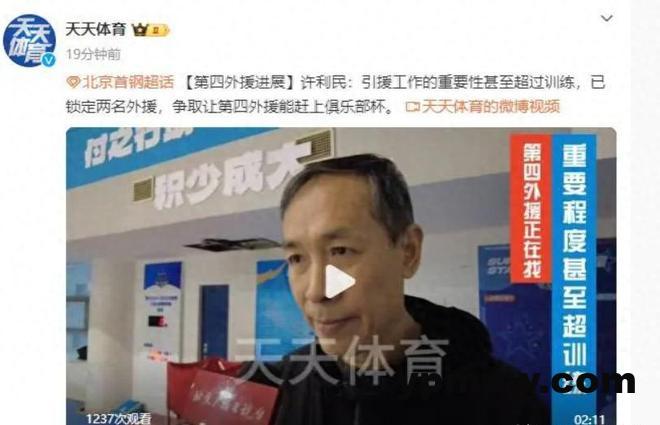 据天天体育今晚的最新消息,该媒体今天专访了北京首钢男篮主帅许利民,因为今天是北京队在春节假期后重新集合的第一天,许利民在采访中透露,北京队的第四外援已经锁定了具体人选,而且不止一个人,而是两名外援,一个是内线,一个是外线,争取让这两名外援赶上这个月的俱乐杯比赛,以考察他们的水平。