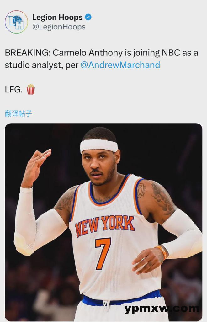 40岁的安东尼,终于踏上了新征程,开启了解说员生涯,也算是继续为篮球事业继续发光发热。