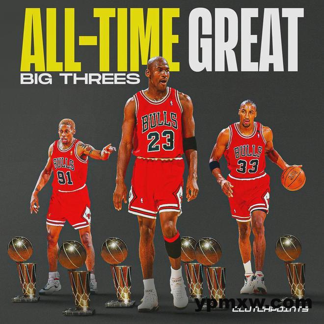 以迈克尔乔丹、皮蓬和罗德曼为首的芝加哥公牛三巨头,他们曾在90年代,连续三个赛季进入总决赛,赢得NBA总冠军。不过,迈克尔乔丹和皮蓬,在罗德曼加入他们之前,就已经完成过三连冠。