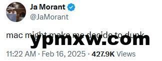 直播吧2月16日讯 全明星扣篮大赛,麦克朗以200分的满分夺冠。 赛后,灰熊球星莫兰特发推写道:“麦克朗可能会让我决定去扣篮大赛。” 据统计,麦克朗成为NBA扣篮大赛第一个三连冠的球员,夺冠次数追平小土豆并列历史第一。 KY体育新闻中心 KY体育·(中国)官方网站新闻中心 实至名归!四次扣篮全满分 麦克朗扣篮大赛三连冠 枪手帝星17岁恩瓦内里6次过人&5项数据全场最高,吧友评分9.9