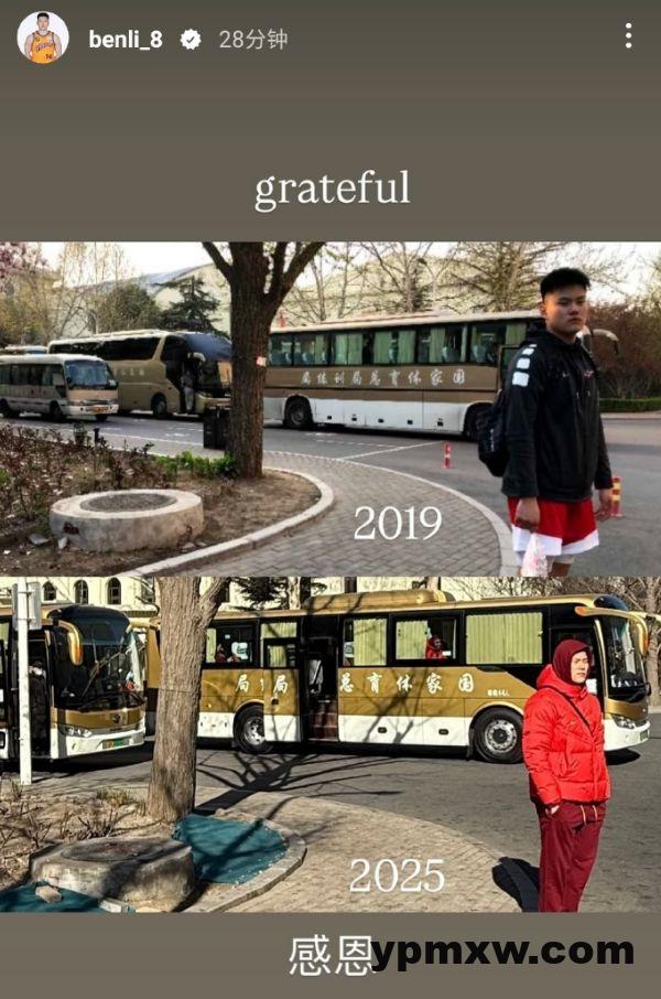 晚些时候,李弘权在个人的INS上发布了一张2019年入选国青男篮集训队的图片与2025年中国男篮集训队的图片写了两个字——感恩。