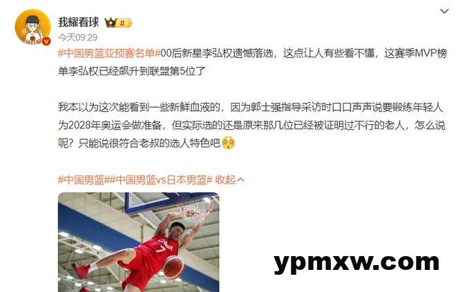 还有人说:00后超星李弘权遗憾落选让人看不懂,这赛季MVP榜李弘权已经升至第五了。郭士强采访口口声声说要锻炼年轻人为2028年奥运会准备,结果最终还是选了几个证明过不行的老人。