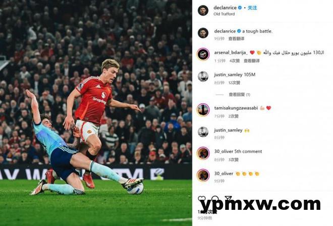 赖斯也通过社媒晒出自己倒地放铲破坏霍伊伦单刀球的瞬间照,并配文:“一场艰难的战斗。”