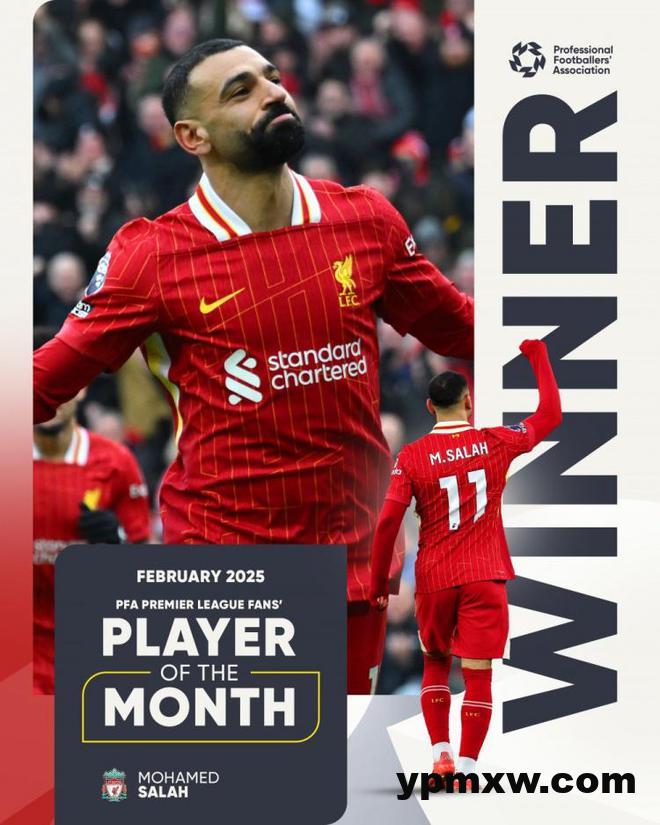 直播吧3月10日讯 官方消息,利物浦前锋萨拉赫当选PFA(英格兰职业球员工会)球迷票选英超2月最佳球员。