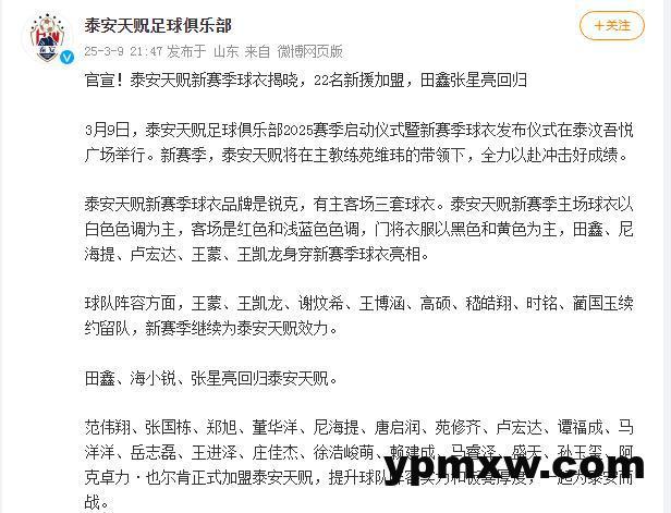 北京时间3月10日,让我们继续关注国内足坛。2025年中超联赛在战罢两轮之后进入了间歇期,各队迎来调整时间。山东泰山队已经于7日重新集结,全力备战接下来的赛事。