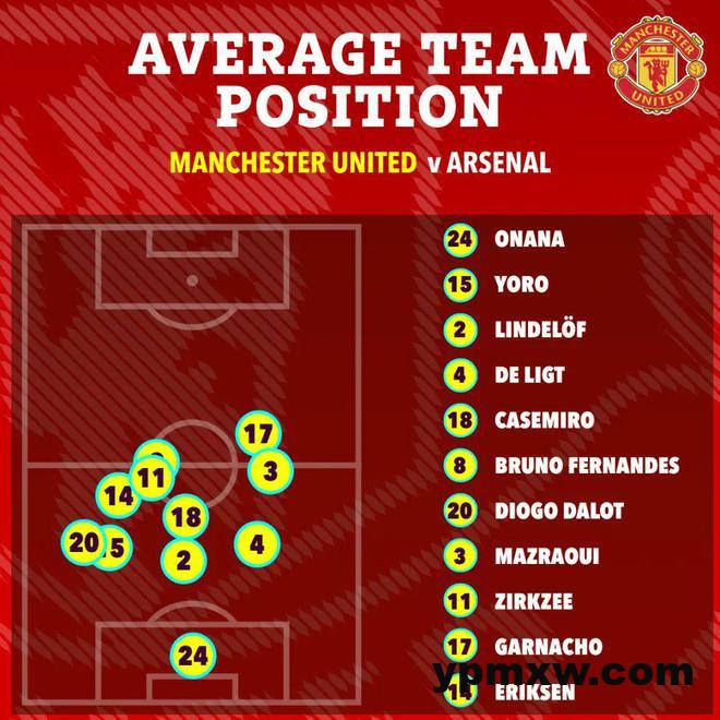 比赛中两队球员的平均站位图表明,曼联只有加纳乔一人大部分时间内处于阿森纳的半场,其余球员都在中后场防守;相比较而言,阿森纳则仅有中卫加布里埃尔、萨利巴和门将大卫·拉亚的位置在本方半场。《太阳报》戏称,阿莫林复刻了老师穆里尼奥的「摆大巴」战术。阿森纳主帅阿尔特塔则怒斥:曼联根本不想踢球。