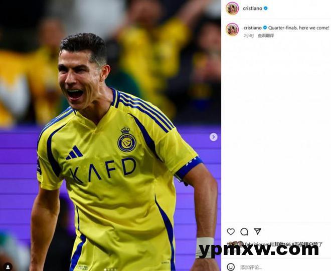 直播吧3月11日讯 亚冠精英1/8决赛次回合,C罗点射破门,利雅得胜利3-0德黑兰独立,晋级亚冠八强。 赛后,C罗更新社媒:“八强,我们来了!” 本赛季,C罗为利雅得胜利出场32次,贡献27球4助攻。 KY体育新闻中心 KY体育·(中国)官方网站新闻中心 本菲卡主帅:我们不会专门盯防巴萨某位球员,本菲卡有机会晋级 詹姆斯效应!伤停后湖人战篮网票价狂跌59% 40岁超巨净资产曝光