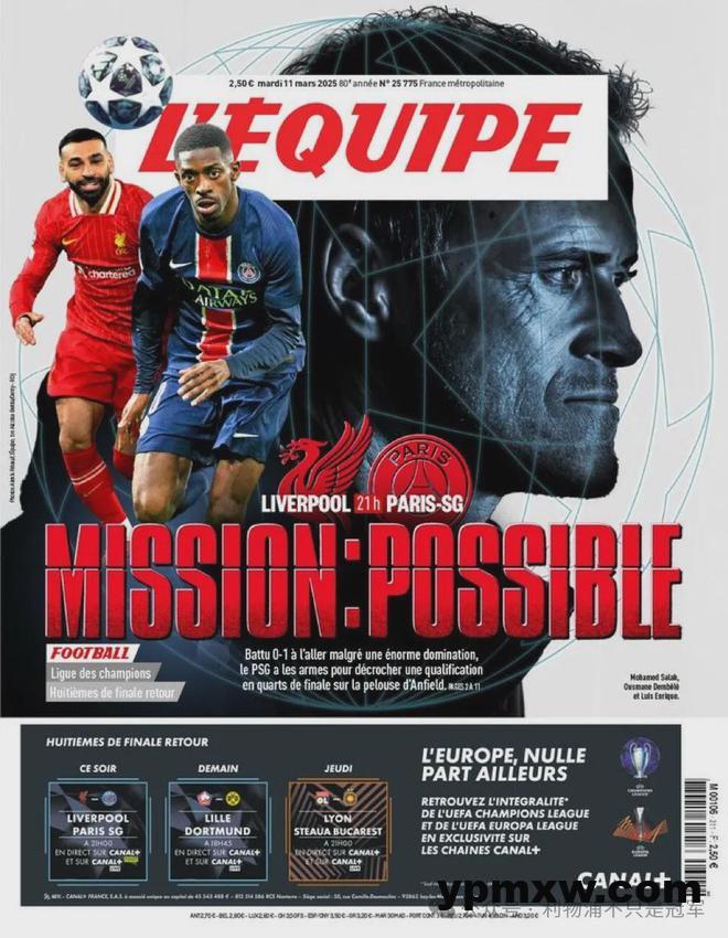 16年后的今天,在巴黎做客安菲尔德赛前,法国《队报》的头版大标题是:“可能的任务(Mission Possible)!”