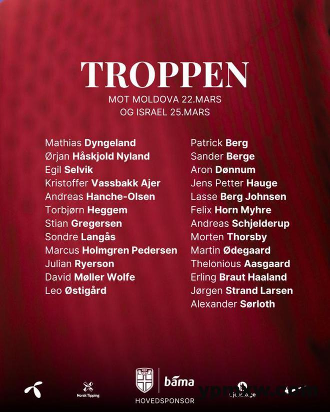 直播吧3月11日讯 挪威公布新一期国家队大名单,哈兰德、厄德高、索尔洛特在列。