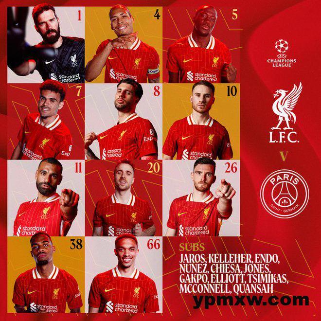 雷速体育3月12日讯 欧冠1/8决赛次回合,利物浦主场对阵巴黎,利物浦首发率先出炉。 门将:阿利松 后卫:范戴克、科纳特、阿诺德、罗伯逊 中场:赫拉芬贝赫、索博斯洛伊、麦卡利斯特 前锋:萨拉赫、若塔、迪亚兹 KY体育新闻中心 KY体育·(中国)官方网站新闻中心 记者:利物浦仍未与萨拉赫谈妥续约,但对达成协议持乐观态度 记者:萨拉赫续约仍未达协议但还在谈判,利物浦对此感到乐观