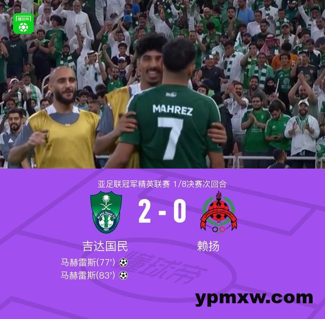 在北京时间3月12日进行的亚足联冠军联赛1/8决赛次回合中,吉达国民迎战赖扬。比赛中,马赫雷斯表现出色,成功梅开二度,为球队锁定胜局。最终,吉达国民以2-0战胜赖扬,两回合总比分5-1淘汰对手,顺利晋级下一轮。