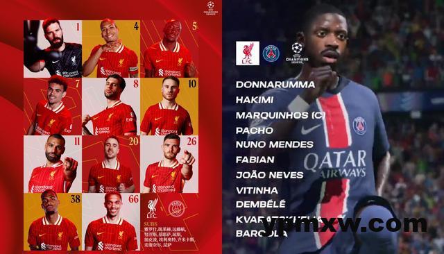 这回在安菲尔德作战,两队尽遣主力。若塔、萨拉赫、索博斯洛伊、迪亚斯组成利物浦进攻群,克瓦拉茨赫利亚、登贝莱和巴尔科拉搭档大巴黎进攻三叉戟。