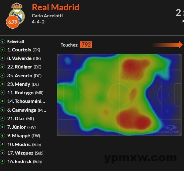 可以想到,因为在缺少大中锋的情况下,他们不可能按照过去有中锋时(哪怕是何塞-卢)那样的传中、抢点、后排套上争抢机会模式来打了。维尼修斯、罗德里戈、包括姆巴佩都是在突击方面远胜过被迫的站桩方面效率选手,因此,他们也会自主扯到边路来踢球。