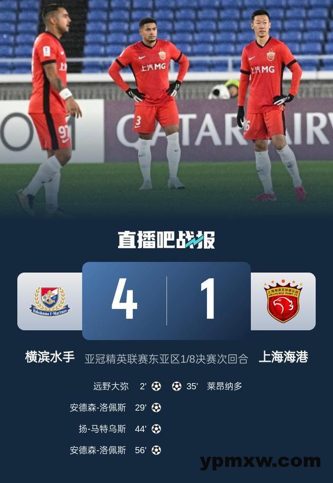 直播吧03月12日讯 亚冠精英联赛东亚区1/8决赛次回合,上海海港客场1-4惨败横滨水手,两回合1-5被淘汰。