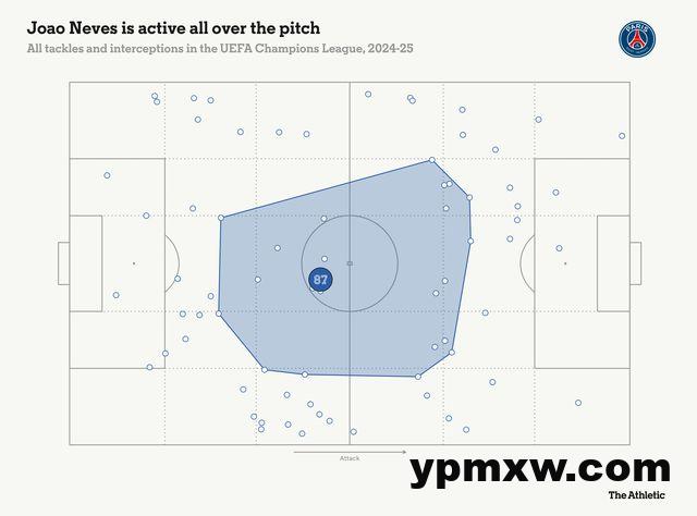 在巴黎圣日耳曼,法甲前两场比赛,内维斯就送出 4 次助攻,后来又添了 4 次,欧冠里还有 1 次。这一方面是因为他位置稍微靠前了些,通常维蒂尼亚拖后,内维斯和法比安・鲁伊斯在两侧。说实话,这助攻数据,算是意外之喜。