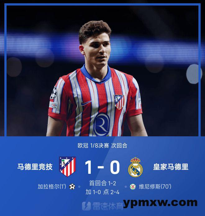 ⚽欧冠战报:加拉格尔闪电破门,阿尔瓦雷斯、略伦特点球不进,皇马6-4淘汰马竞