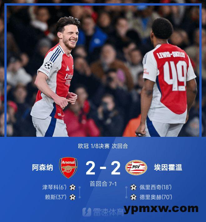 ⚽欧冠战报:津琴科建功,赖斯破门,阿森纳2-2埃因霍温,总比分9-3晋级