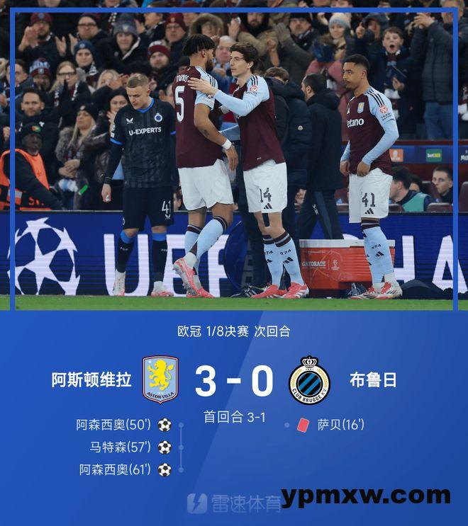 ⚽欧冠战报:阿森西奥双响!维拉主场3-0十人布鲁日,总比分6-1晋级