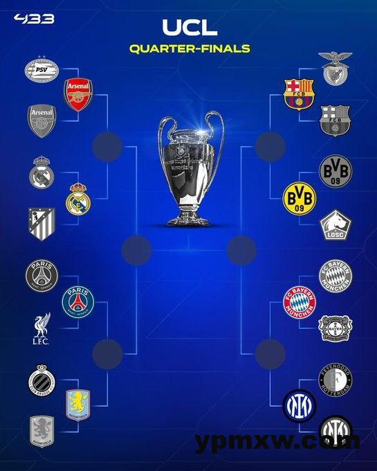 欧冠八强出炉:阿森纳vs皇马,拜仁对决国米