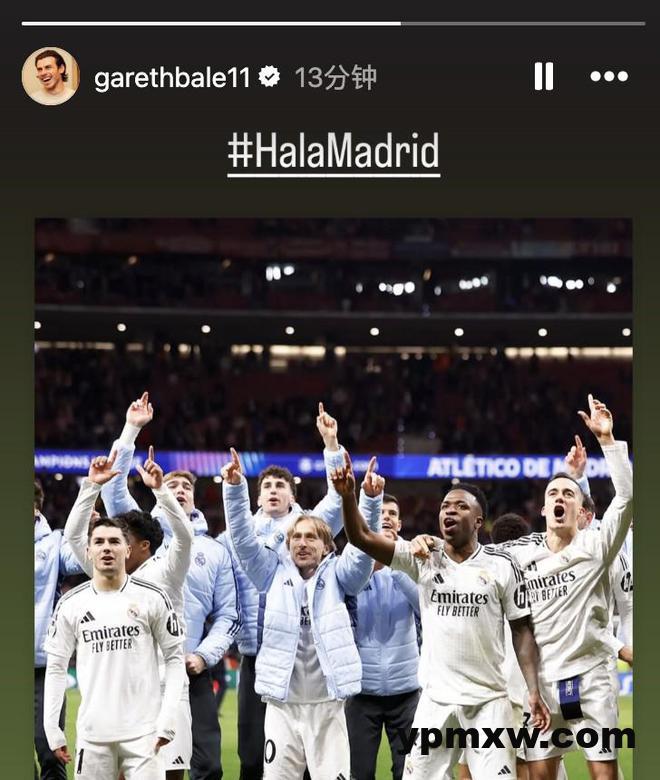 皇家马德里在欧冠1/8决赛淘汰马德里竞技晋级下一轮,昔日旧将贝尔更新社交媒体为皇马送上了祝贺。