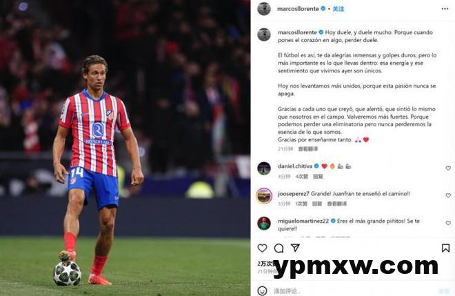 直播吧3月14日讯 马竞在本轮欧冠主场被皇马点球淘汰,出自皇马青训的马科斯-略伦特罚丢点球,他也在今日通过社媒发文。