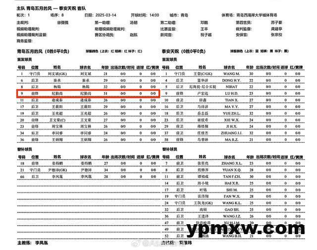 直播吧03月14日讯 北京时间今日14:00,足协杯正赛第一轮比赛将打响。 中冠球队青岛五月的风将对阵中乙球队泰安天贶。根据首发名单,青岛五月的风投资人、51岁的纪勤尚将先发出战,担任前锋。 KY体育新闻中心 KY体育·(中国)官方网站新闻中心 真降维打击!姜宁在业余赛事比赛中独得10分 广东队最适合的大外援曝光!“加强版吉伦沃特”有望被朱芳雨看中