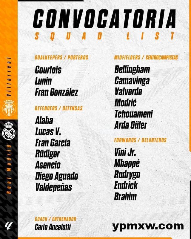 直播吧3月14日讯 北京时间3月16日周日凌晨1点30分,皇家马德里将在西甲第28轮客场挑战比利亚雷亚尔,球队今天公布了名单。