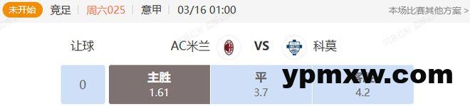 目前竞彩数据来看,给出对米兰的支持还是合理的,科莫虽然是升班马,但定位并不算低,目前对米兰的支持有强化的趋势,本场米兰当胜。