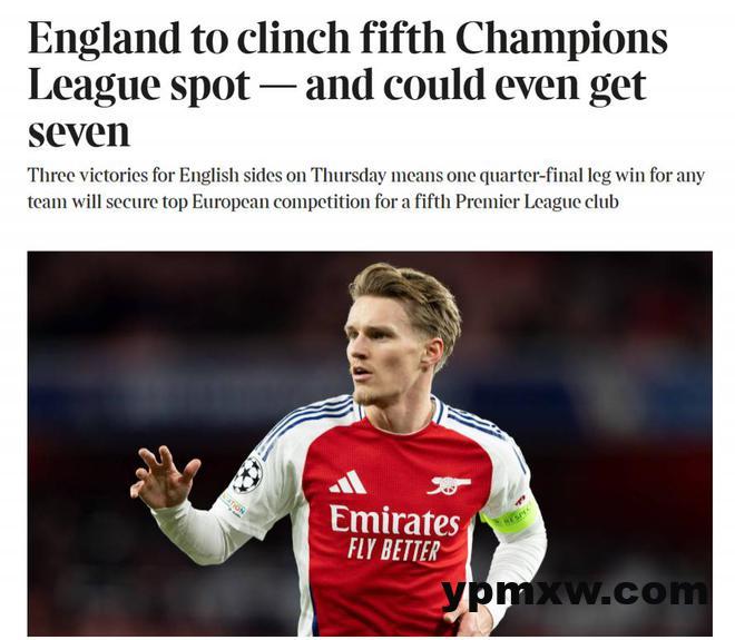 英超基本锁定第五个欧冠名额,《泰晤士报》指出,理论情况下英超下赛季最多可以有7支球队参加欧冠!