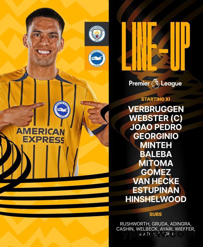直播吧03月15日讯 北京时间今晚23点,英超第29轮,曼城主场迎战布莱顿,赛前双方公布首发阵容。