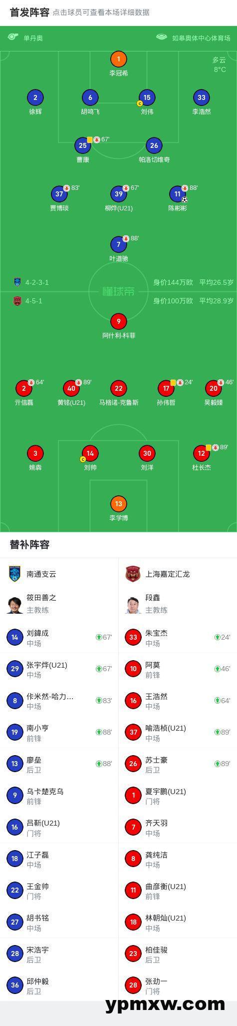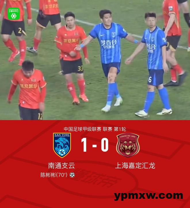 北京时间3月15日,中国足球甲级联赛首轮比赛,南通支云坐镇主场迎战上海嘉定汇龙。比赛中,南通支云凭借陈彬彬的进球取得领先。最终,南通支云以1-0的比分战胜上海嘉定汇龙,全取三分。