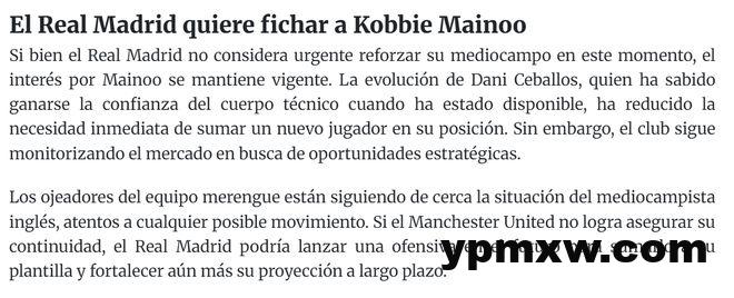 根据西班牙「Fichajes转会网」的报道,皇家马德里正在密切关注曼联青训中场科比·梅诺。「银河战舰」继续为未来计划,尽管中场增援不是当务之急,但他们认为19岁的梅诺是有价值的年轻球员,潜力巨大。