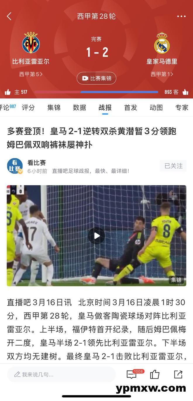 3月16日1:30,西甲第28轮,皇马客战比利亚雷亚尔(马德里与比利亚雷亚尔市相距约400公里),皇马激战近2小时逆转取胜