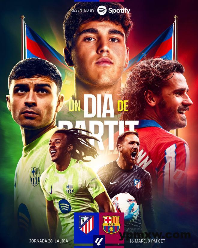 西甲第28轮,巴塞罗那将在客场和马德里竞技上演焦点战,巴萨官方在赛前发布了本场比赛海报。