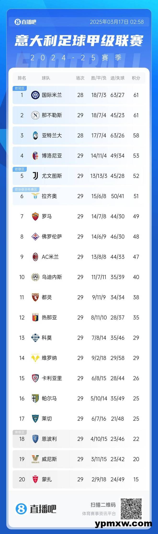 直播吧3月17日讯 意甲第29轮,尤文0-3佛罗伦萨两连败,先赛距榜首9分。 上一轮,尤文0-4不敌亚特兰大,斑马军团两轮进0球丢7球,落后前四1分&距榜首9分。 KY体育新闻中心 KY体育·(中国)官方网站新闻中心 格莱姆斯28+6 席菲诺19分 华盛顿29+12 76人送独行侠3连败 湖人首发:东契奇 里夫斯 古德温 芬尼-史密斯 海斯
