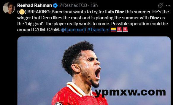 传着传着,利物浦的迪亚斯又成首选了。