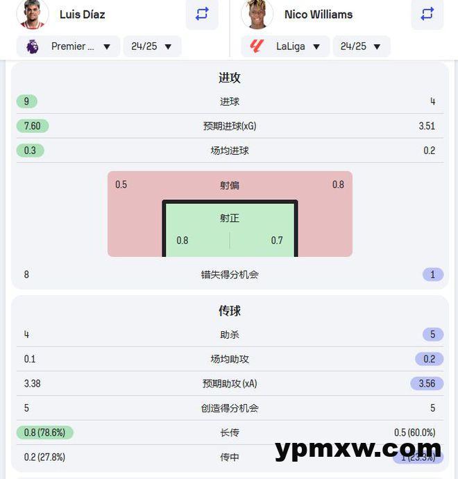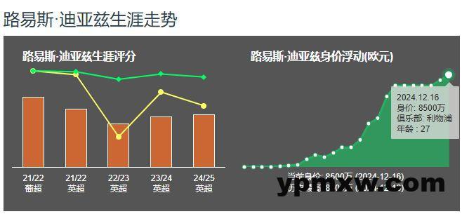 迪亚斯本赛季联赛首发22次替补6次制造9球4助,欧冠首发7次替补2次打进3粒进球。