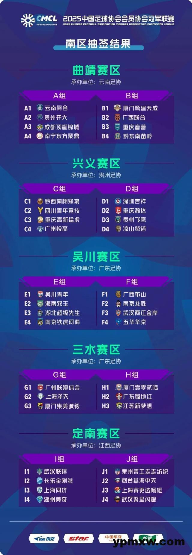 今年的中冠联赛参赛球队的数量明显增多,参加抽签的70支球队分为南、北9个赛区,分别是云南曲靖、贵州兴义、广东吴川、广东三水、江西定南、宁夏银川、陕西榆林、内蒙古包头和山东日照赛区。3月17日晚,广东省足协副主席周穗安、三水区文广旅体局局长叶俊凯、锐克体育总经理赵家怡与部分参会俱乐部代表参加抽签。
