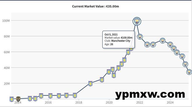3月18日,德国转会市场网站更新了英超球员的身价,曼城前锋格拉利什身价降至3500万欧,他的巅峰身价曾达到1亿欧。