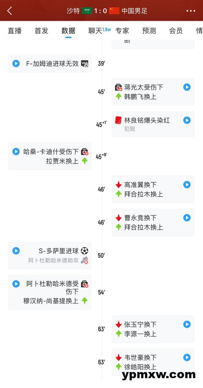 直播吧03月21日讯 世预赛亚洲区18强赛,中国vs沙特。 比赛第62分钟,国足已经用完了全部5个换人名额,先后登场的球员分别是韩鹏飞、拜合拉木、杨泽翔、徐皓阳、李源一,归化国脚塞尔吉尼奥无缘国足首秀! KY体育新闻中心 KY体育·(中国)官方网站新闻中心 国足不设防!11战已丢22球,魔咒延续28年,9人防不住 范志毅谈国足丢球:疯抢的时候背着手防守有效吗?大家早点睡吧