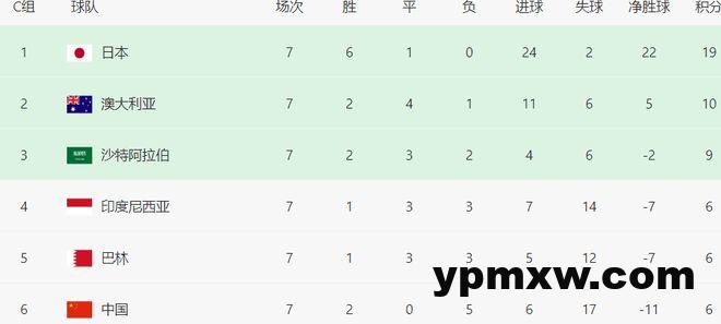 前面7轮过后,中国男足2胜5负,积6分,净胜球为-11个,排在C小组积分榜的最后一位。刚刚结束的一轮比赛,国足0:1不敌沙特队,输掉了一场非常关键的比赛,致使出线前景变得更加渺茫。本轮如果无法在主场拿下澳大利亚队,那么,国足直通2026世界杯的希望将彻底变成泡影,只能寄希望于拿到附加赛的比赛资格。