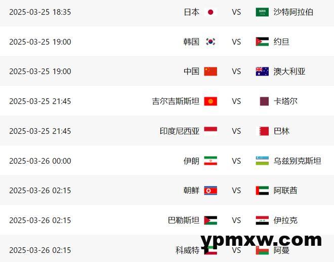 从以上信息来看,日本VS沙特的比赛最早开打,随后国足VS澳大利亚、韩国VS约旦同时开球,再到晚些时候,也有2场比赛,包括印尼VS巴林、吉尔吉斯斯坦VS卡塔尔,再到次日凌晨,伊朗、朝鲜、乌兹别克斯坦、阿联酋、巴勒斯坦、科威特、伊拉克、阿曼等队将会出战。