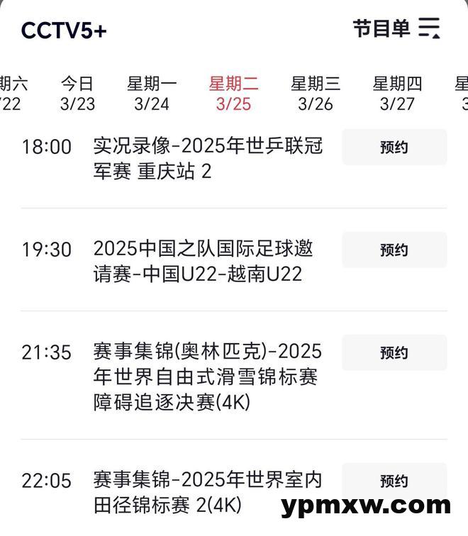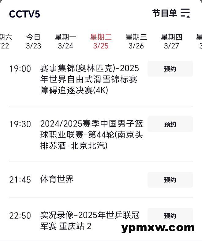 CCTV5频道的节目单: