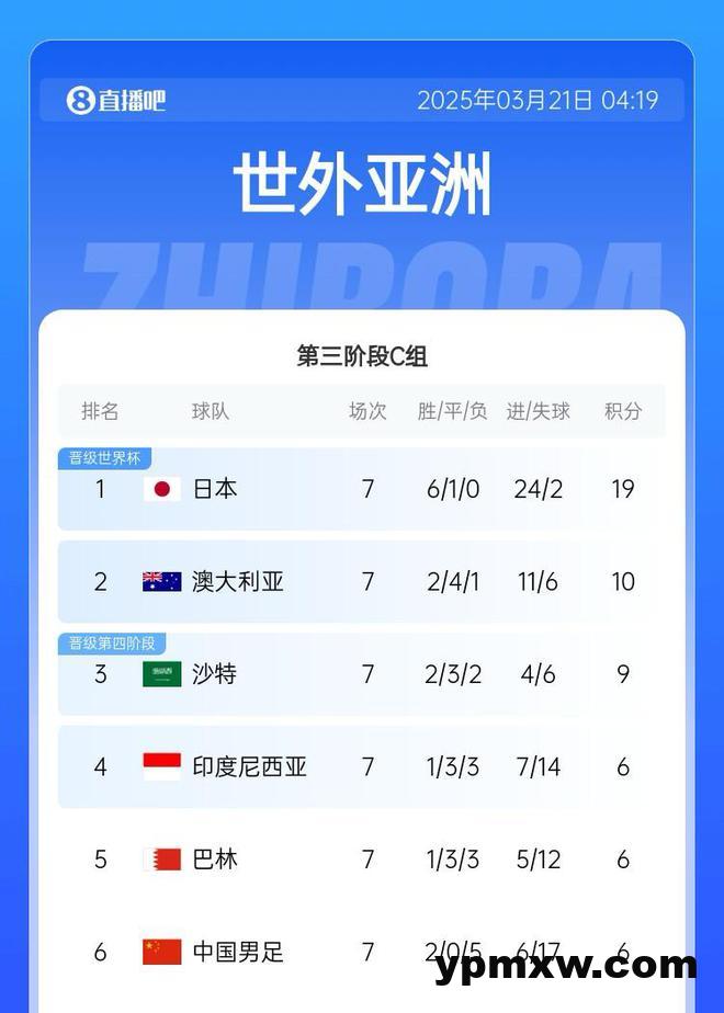直播吧3月25日讯 世预赛亚洲区第三阶段C组第8轮,国足今晚将主场迎战澳大利亚。 国足目前以6分排名垫底,本场若输给澳大利亚,将提前2轮无缘前二。 此外日本已经提前出线,如果国足输球且沙特赢了日本,国足也将基本无缘前三。 KY体育新闻中心 KY体育·(中国)官方网站新闻中心 萨沙-东契奇:卢卡生来就属于洛杉矶 这座城市仿佛为他量身打造 131天不胜!国足能赢澳大利亚吗?解读5优势+7劣势 打平当赢