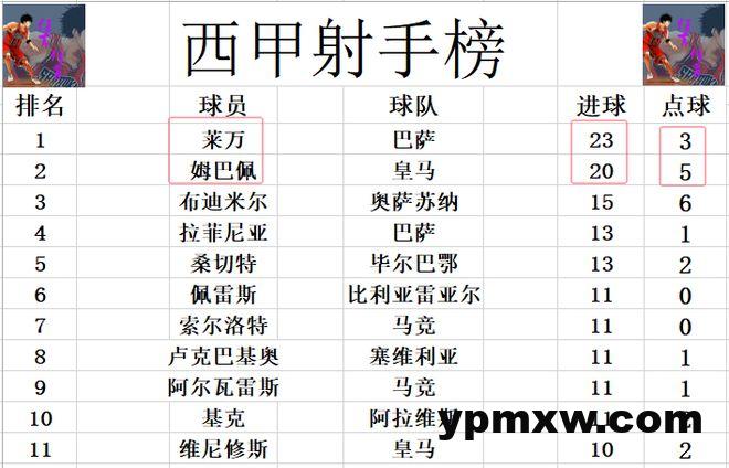 射手榜方面,莱万今天打入一球后,再次将和姆巴佩的差距拉大,莱万3球的优势稳居榜首。第3的布迪米尔比姆巴佩都少了5球,基本上金靴将从莱万和姆巴佩之间产生。阿尔瓦雷斯,索尔洛特等人11球球刚好挤入前十,皇马的世界足球先生维尼修斯1球之差,再次无缘前十。