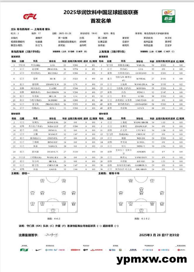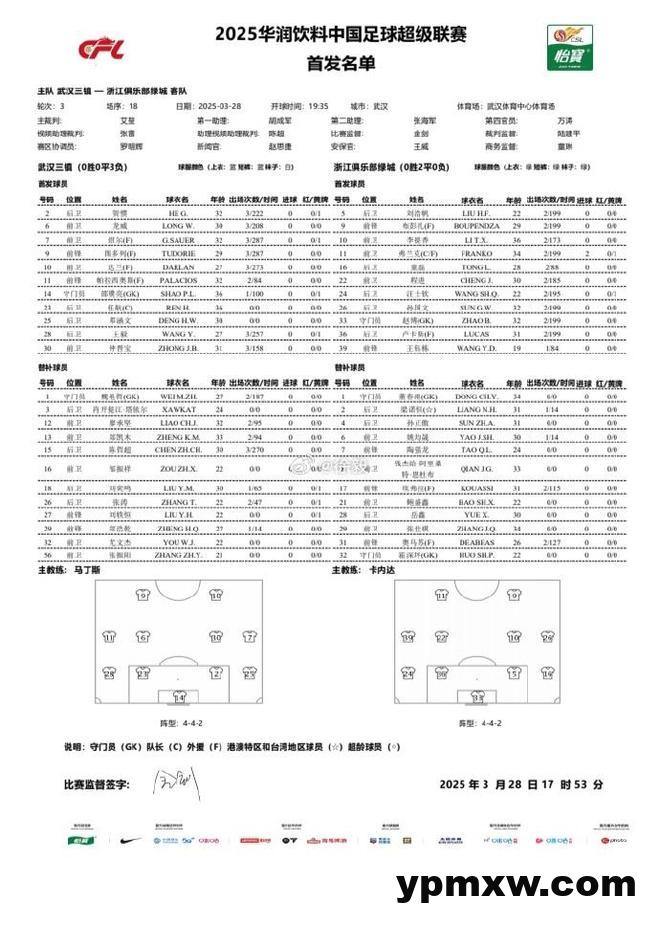 雷速体育3月28日讯 今晚中超三场同开,而其中两场官方名单同时出现错误。 武汉三镇对阵浙江的比赛名单中,中超官方显示武汉三镇已经3负;另一场青岛西海岸对阵海港的比赛名单,中场官方则显示西海岸2胜1平。 KY体育新闻中心 KY体育·(中国)官方网站新闻中心 快乐的足球精灵!小罗社媒晒效力巴萨时期AI漫画图片 短短2天!又一18强主教练下课,国足主帅伊万竟成候选?球迷热议