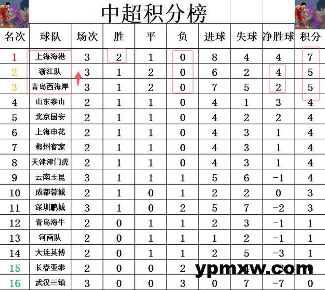 积分榜方面,上海海港无力击败青岛西海岸,这样的话本赛季仅3轮就已经没有全胜球队,上港暂时以2分优势仍居榜首,不过他们的榜首并不稳,申花,国安,山东本轮都有机会反超。浙江队和青岛西海岸都是1胜2平保持不败暂时杀进前3,浙江队净胜球优势排在第2。