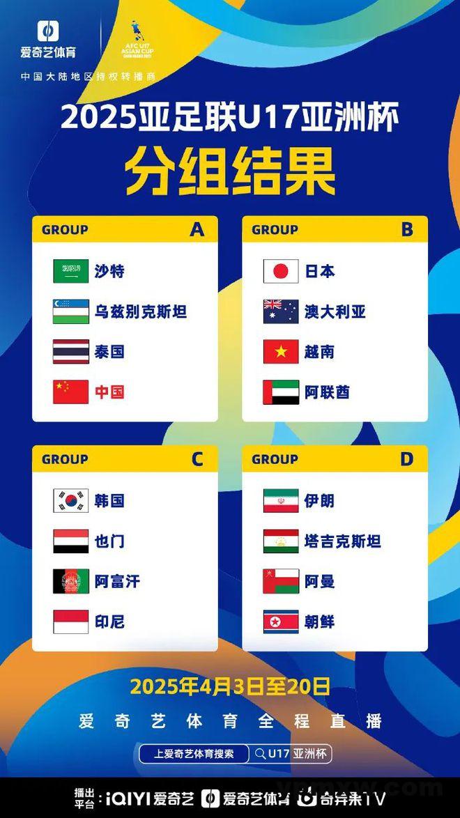 中国U17本届U17亚洲杯小组赛赛程如下(北京时间),届时爱奇艺体育将全程直播中国队的所有比赛。